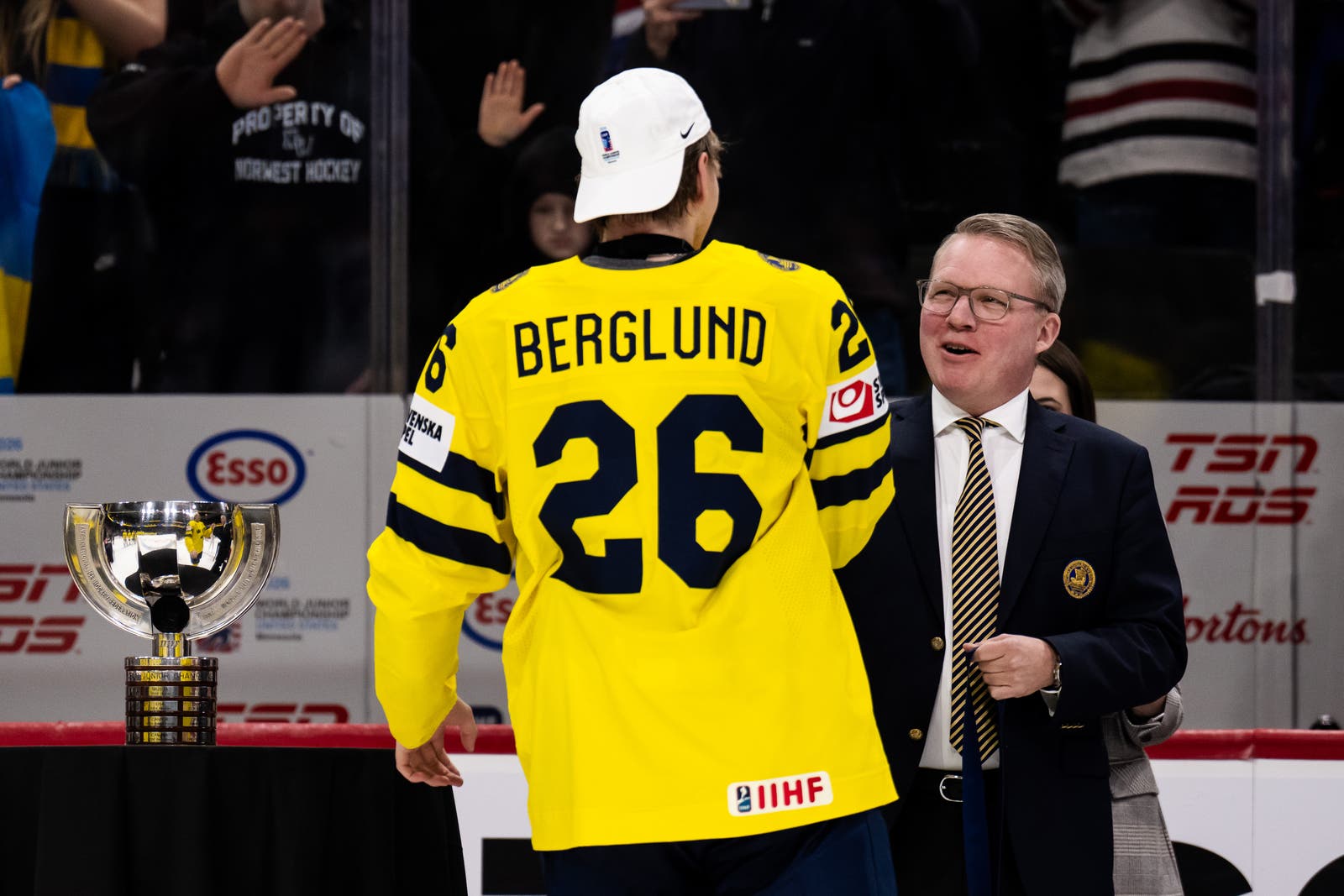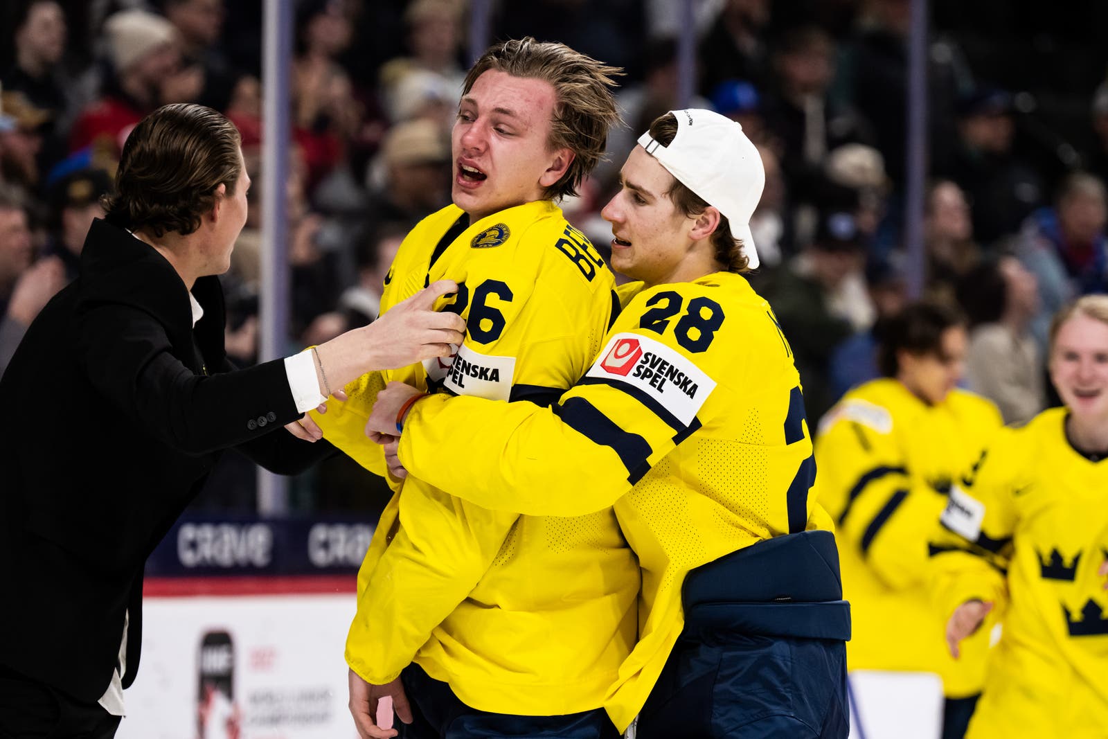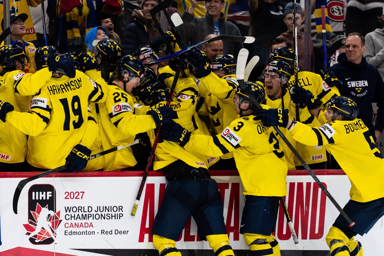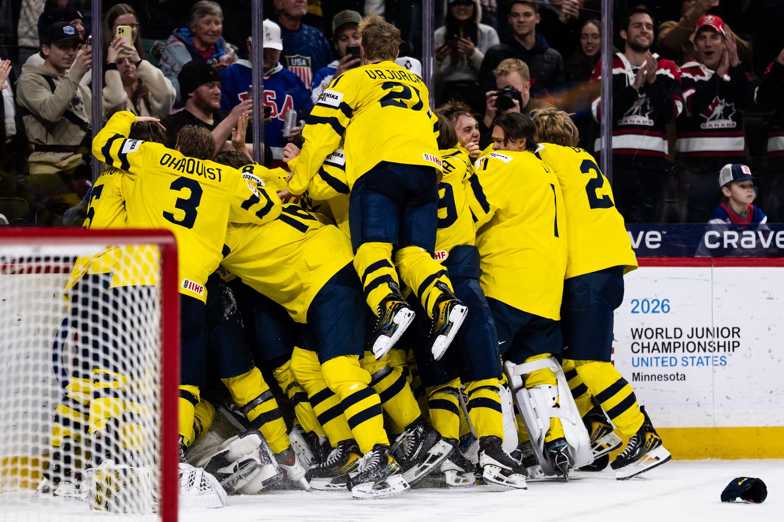 Juniorkronorna vinner JVM-finalen mot Tjeckien med 4–2. Glädjen är total när Jack Berglund lyfter pokalen – Sveriges tredje JVM-guld någonsin. Här är några bilder från guldfirandet.