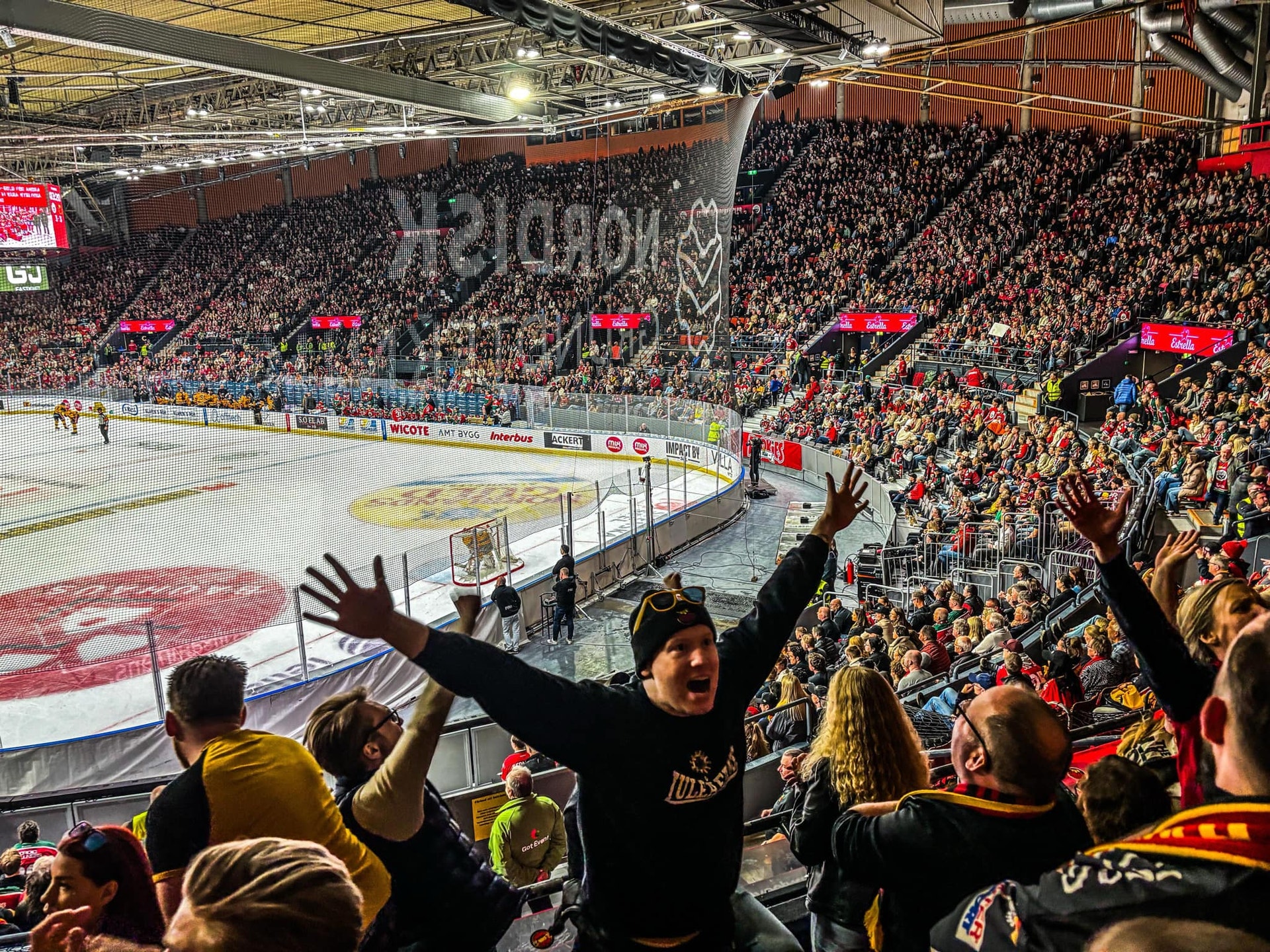 Jag kliver in på Hard Rock Café för att ansluta mig till Luleåsupportrarnas samling och upptakt inför semifinal tre i Scandinavium. Uppladdningen verkar stavas malt, humle, jäst och vatten. Dessa ingredienser kompletteras med en liten nidramsa om Boden, en rivalitet som vägrar dö trots att lagen inte spelat i samma liga sedan Olof Palme var statsminister. Några trötta stammisar lyfter på huvudet och verkar undra vad det är som händer. Ett antal Frölundasupportrar ser sig förtvivlat omkring och finner sig vara hermeliner omringade av en hygglig skara norrbottniska katter mitt på Avenyn.